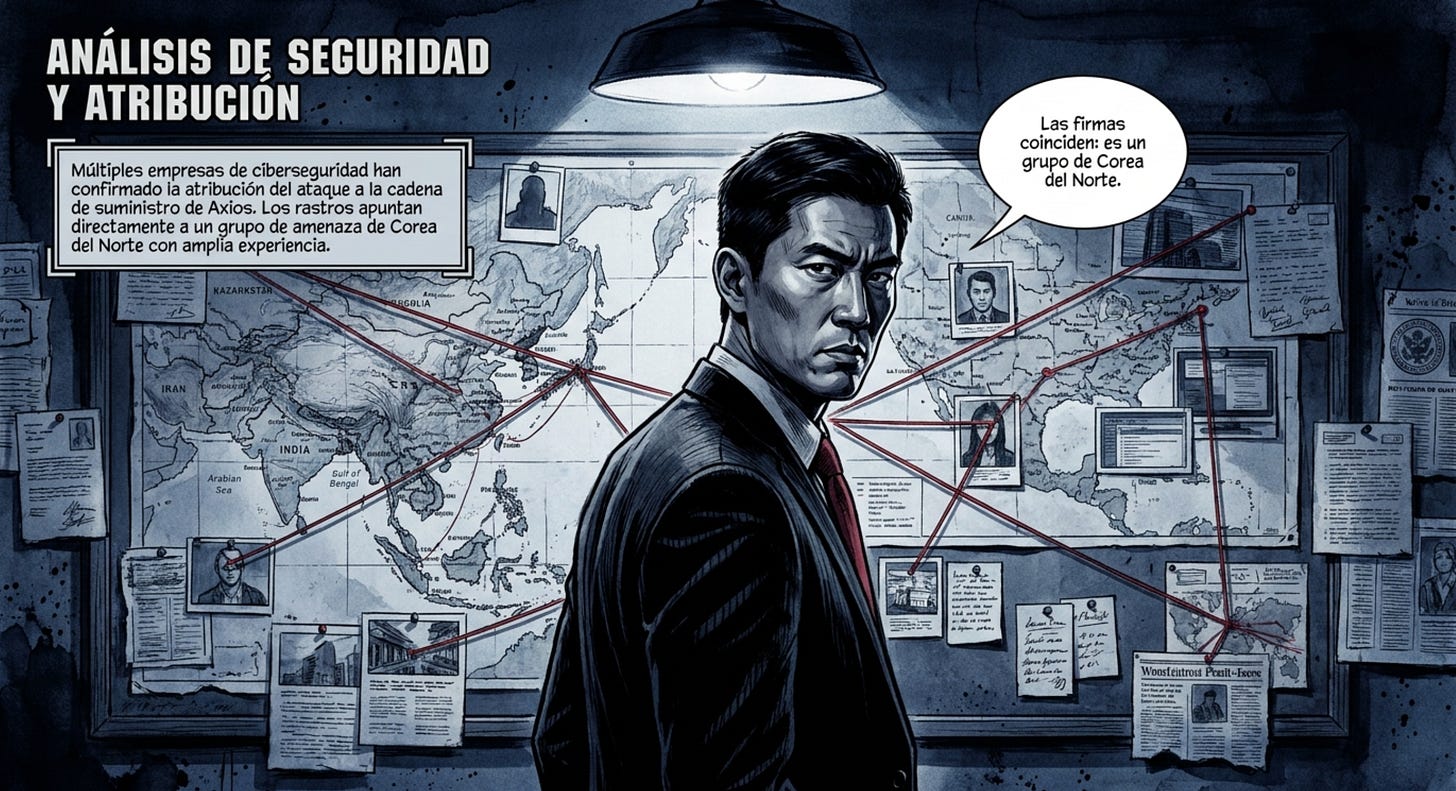 El ataque a la cadena de suministro de Axios demuestra que incluso proyectos ampliamente adoptados y con prácticas modernas de publicación (OIDC Trusted Publisher, CI/CD automatizado) siguen siendo vulnerables cuando existen vías de escape, como el uso de tokens de larga duración. La sofisticación operativa —pre‑provisionamiento de dependencias, dropper multiplataforma, antiforénsica y atribución a actores norcoreanos con historial de operaciones complejas— sitúa este incidente entre los ejemplos más relevantes de la amenaza actual contra cadenas de suministro de software.
