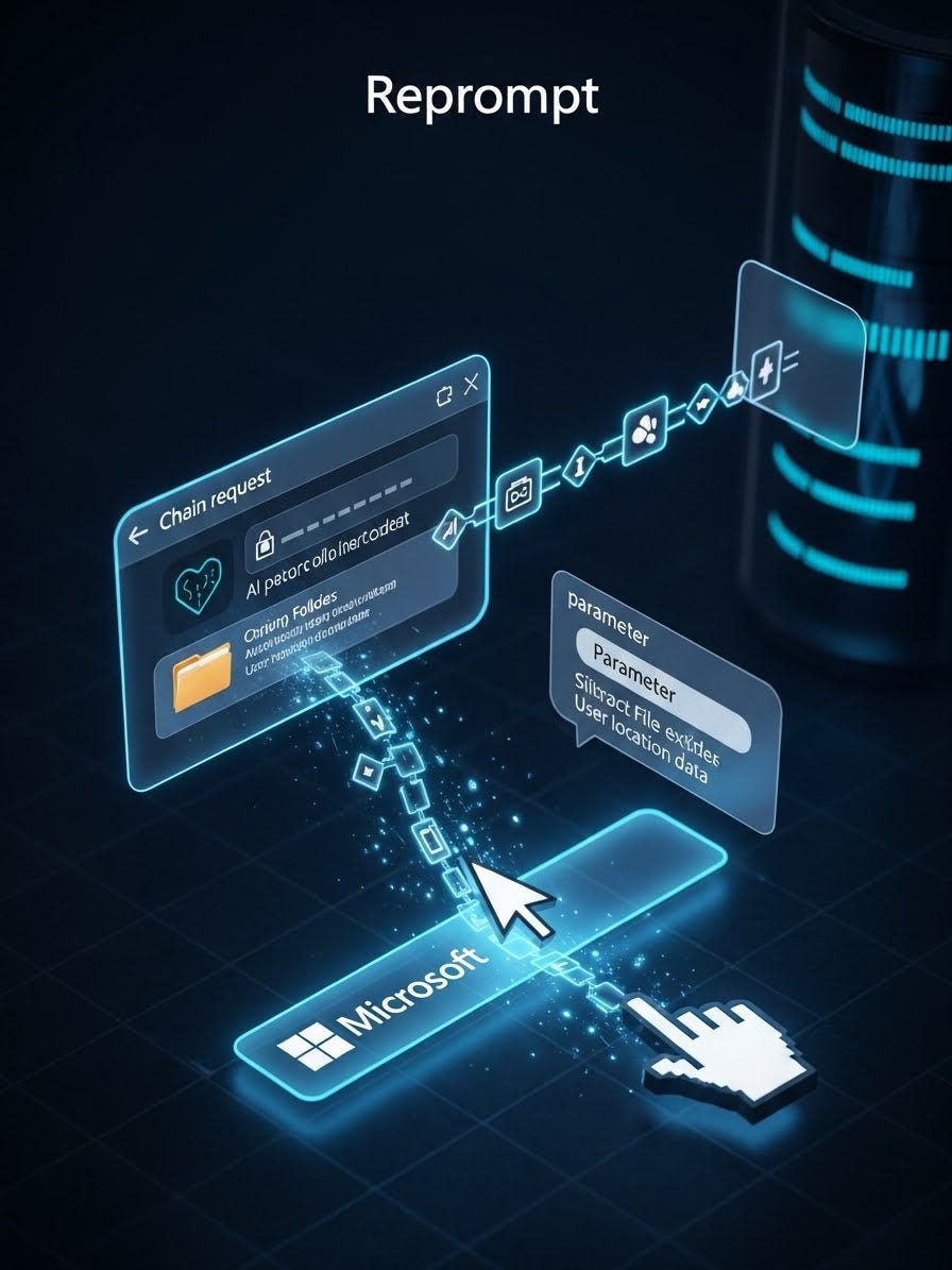 Reprompt es un flujo de ataque de “un solo clic” que permite a un actor de amenazas establecer un punto de entrada invisible para realizar una cadena de exfiltración de datos. A diferencia de otras vulnerabilidades de IA, Reprompt no requiere que el usuario instale plugins, active conectores o proporcione prompts adicionales; solo se necesita que la víctima haga clic en un enlace legítimo de Microsoft.
